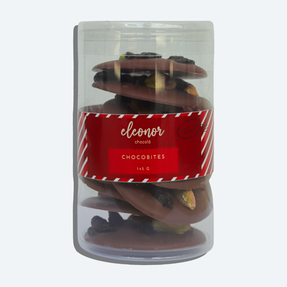 Ruedas de chocolate con nueces, frutos secos, pistacho y naranja cristalizada